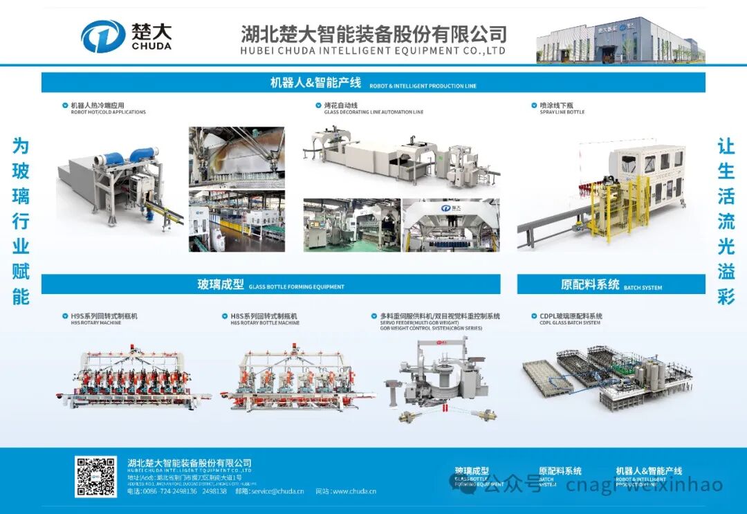 湖北楚大智能装备股份有限公司成立于2005年,专注于为玻璃包装容器和玻璃制品生产企业提供玻璃成型设备、粉体物自动配料系统、基于机器人的产线智能化单元和智能产线等关键装备及智能系统解决方案。作为国家级高新技术企业,楚大智能荣获国家专精特新“小巨人”企业称号,服务于全球超过600家日用、药用、特种玻璃企业,其成套设备已出口至近20个国家和地区。秉承“柔性、智能、高效、安全、可靠”的技术发展理念,楚大智能不断通过科技创新推动行业进步,驱动中国“智”造,努力发展成为全球领先的玻璃智能装备制造商。
