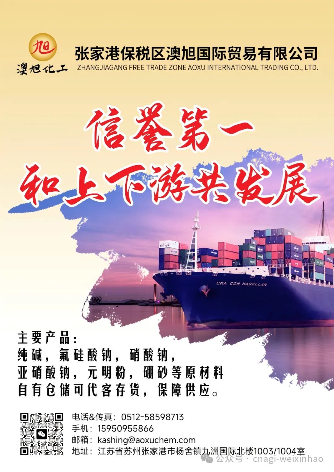 张家港保税区澳旭国际贸易有限公司是一家专注于经销化工产品的国际贸易公司。于2000年开始经营。地址位于江苏苏州张家港市。公司在江苏配备有普货及危险品仓库,可以根据供应商及客户的需求,配合办理公铁水联运及仓储配送服务。另为保证一定的及时供货响应能力,公司有长协车辆数百台。公司的主要产品为纯碱(稳定月销1万吨)、氟硅酸钠(稳定月销1500-2000吨)、硝酸钠(稳定月销1000吨)、亚硝酸钠、元明粉等无机盐。公司一贯秉承信誉第一,长稳发展的经营理念,给客户提供他们公司内部各部门均认可的原辅料一站式解决方案。由于长期以来专业且重信誉的经营方式,客户群体对公司的认可度较高。目前澳旭贸易公司与国内外大型的光伏、浮法、日用玻璃器皿厂家;搪瓷,陶瓷产品生产厂家;日用化工品生产厂家;纺织印染厂家以及石油化工厂家等优质客户构筑了稳定的合作关系。