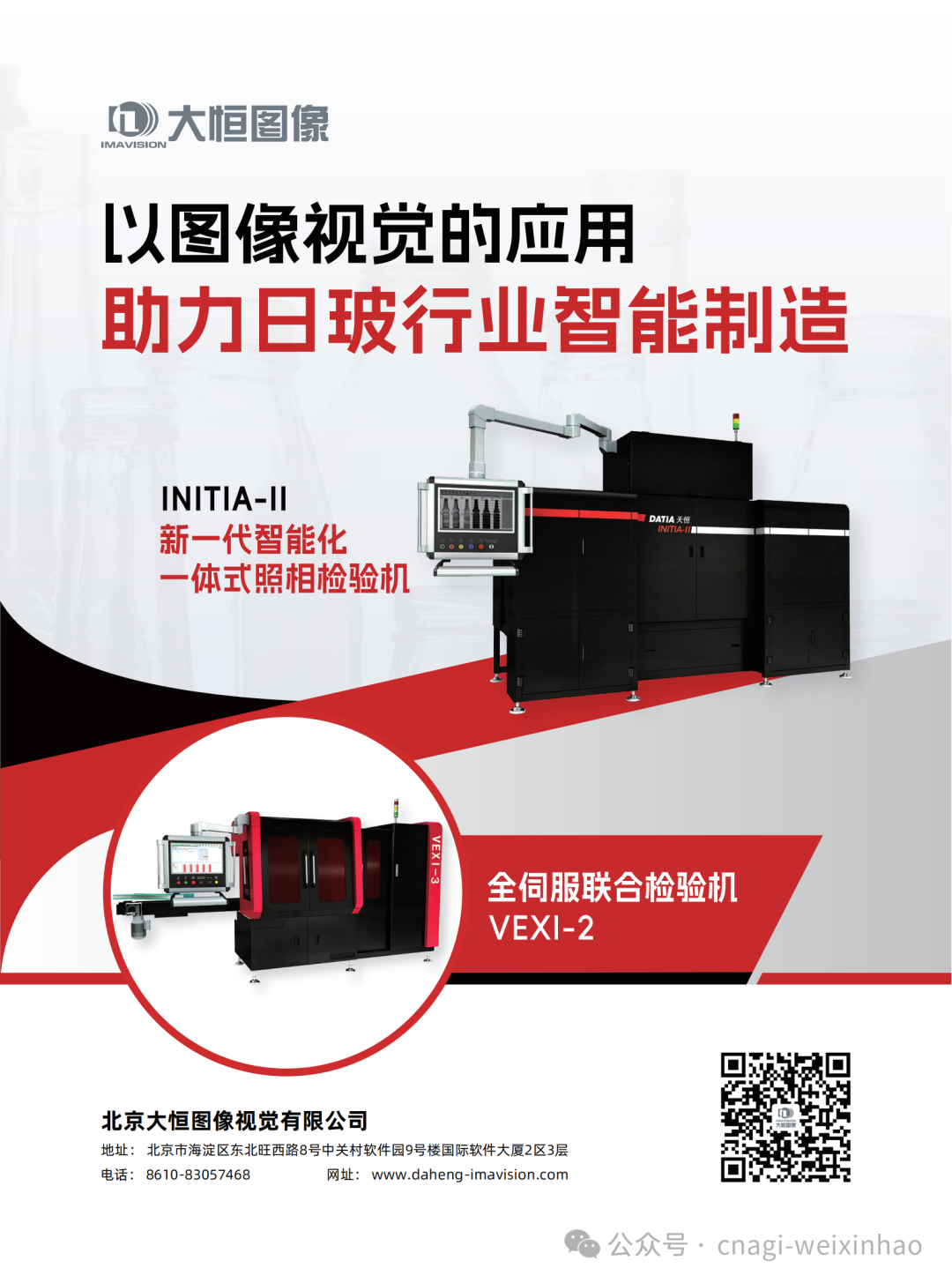 北京大恒图像视觉有限公司(简称“大恒图像”)成立于1991年,是A股上市公司”大恒科技“(600288)旗下核心资产,公司是中国最早成立的专注于视觉图像技术的企业之一,自成立之日起大恒图像一直坚持以技术开发为主的发展道路,建立了技工贸一体化的结构,连续多年被国家认定为高新技术企业。目前拥有校企共建的博士后流动站2个,各类专利279项;公司于2002年通过ISO9001:2000质量管理体系认证。 大恒图像玻璃瓶检测设备已成功应用于啤酒瓶、白酒瓶、输液瓶、食用瓶、化妆瓶等日用玻璃企业,最早并成熟将深度学习应用到日用玻璃行业。从2005年进入日用玻璃行业以来,已经超过1000余套设备服务于客户现场,市场占有率保持领先。大恒图像的玻璃瓶检测设备性能更符合中国客户的生产特点,目前已全面取代进口检测设备,成为国内日用玻璃行业客户的首选。同时大恒图像视觉产品还可应用于热端检测、碎玻璃色选、料滴形状、料滴温度检测等其他领域。